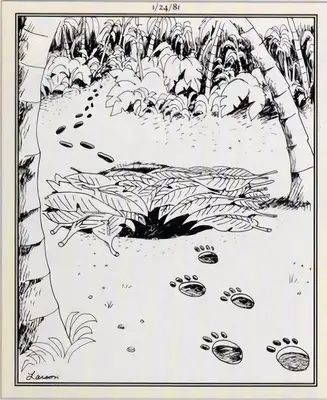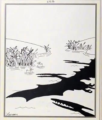 Gary Larson humor frequently played in this realm of uncertainty; it is a common occurrence when first encountering a Odstrániť stránku Zdá sa, že panel niečo stratil. Podrobné informácie o projekte Larson často eliminujú prvý záujem čitateľa.